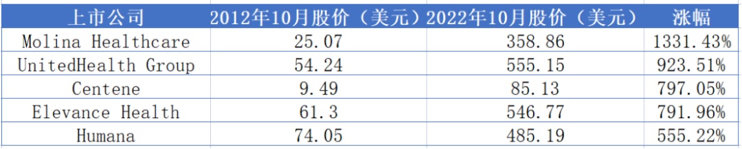 2022年我们还整理了全球100多家上市保险相关公司,包括保险公司、再保险公司、保险中介等,统计了他们从2012年10月到2022年10月的股价情况。我们发现在这十年间,我们的统计范围里有111家保险公司都实现了股价的上涨,占比超过一半。涨幅最大的是美国的健康险公司Molina Healthcare,涨幅超过13倍。这些数据给了我们很大的信心,因为数据说明优秀的保险公司既能实现业务价值、社会价值,也能在资本市场获得认可,给股东创造价值。我们做这轮统计时正值中国保险股的低点,参考了国外同行的经历,我们更加相信,中国优秀保险机构的价值一定会得到更合理的评价。